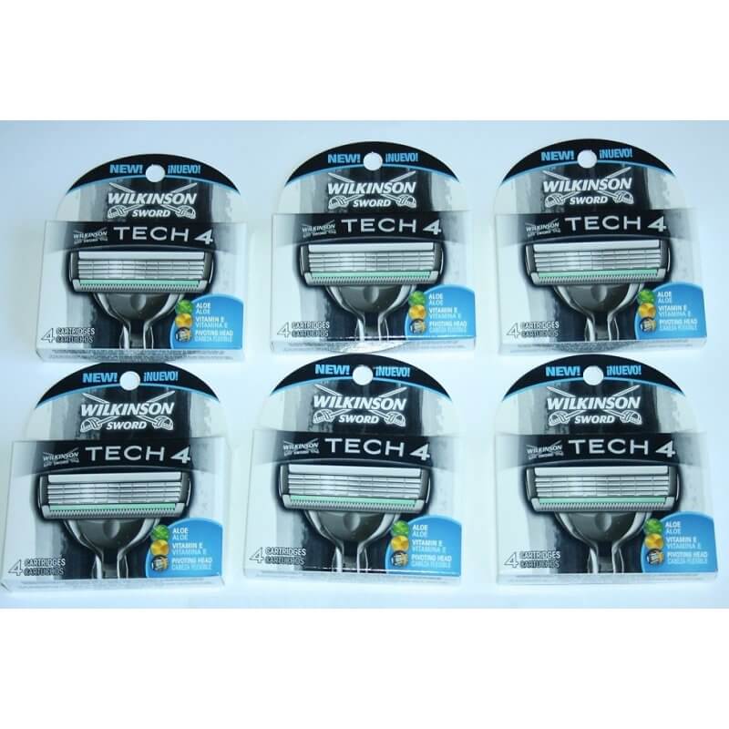 Brand New 6 packets of 4 Blades each Wilkinson Sword Tech4 Refill Cartridges.