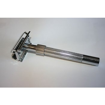 BRAND NEW Double Edge Heavy Duty Chrome Metal Safety Razor works with all Gillette, Schick, Wilkingson and all other brand Double Edge blades. Heavy Duty Metal Razor design with Long chrome handle. This is one of the best Razor we have in our Double edge Razor stock. Custom made long Stainless Steel with chrome leafing.