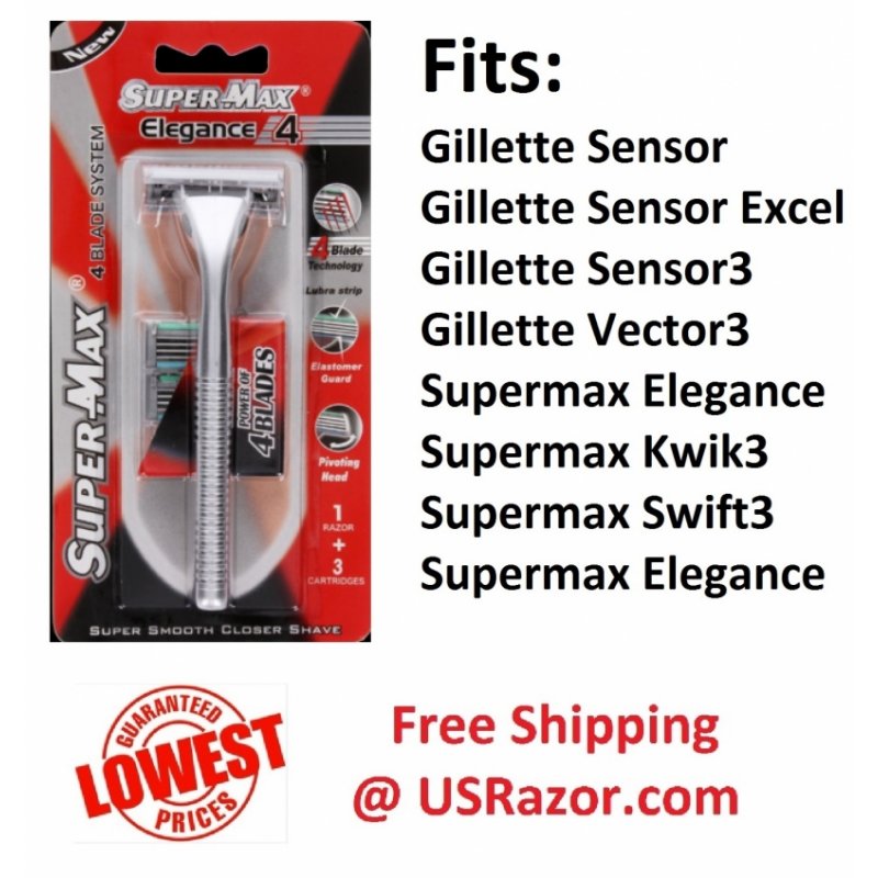 Brand New 1 Razor + 4 Supermax Elegance4 Refill Cartridges. Elegance4 is a 4 blades cartridge. Gillette Sensor Excel Razor blades are 2 blades cartridge and very expensive. Buy best razor blades and save money.